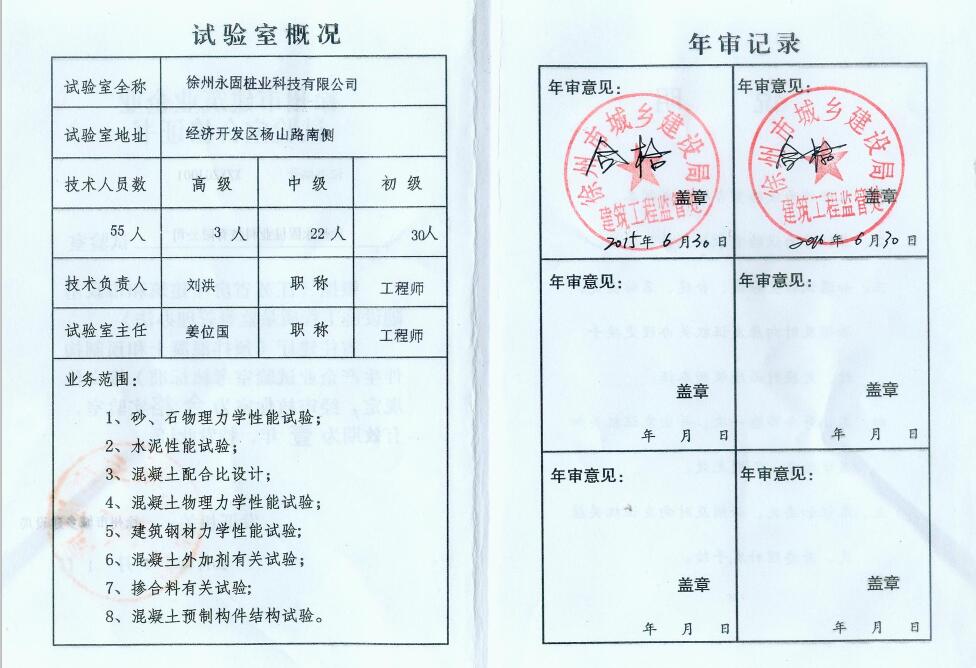 企業(yè)試驗室合格證